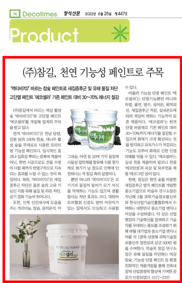 참길, 천연 기능성 페인트로 주목 (장식신문 제447호) 페이지 정보 작성자 최고관리자 작성일22-07-20 15:38 조회28,023회 댓글0건 관련링크 본문 참길, 천연 기능성 페인트로 주목 (장식신문 제447호) 댓글목록 등록된 댓글이 없습니다. 이전글 다음글 목록